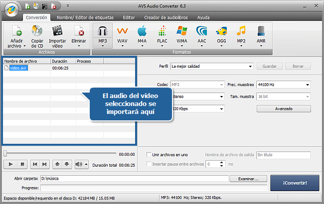 A veces necesitamos extraer una pista de audio de nuestro vídeo para poder escucharla en un lector de audio, por ejemplo, en un reproductor de MP3 portátil. Esta tarea resulta muy fácil si utiliza el AVS Audio Converter. Siga los pasos más abajo para aprender a hacerlo.