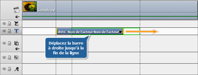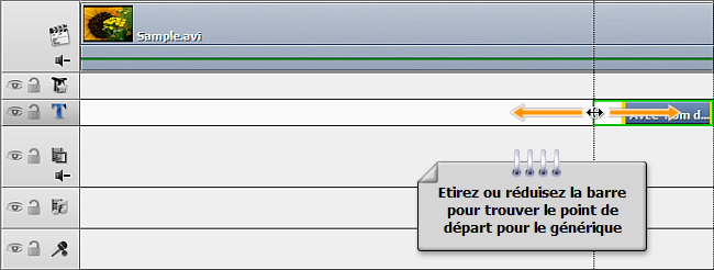 Pour trouver le moment précis où le générique apparaît, placez le curseur de la souris sur le bord gauche de la barre du générique, le curseur se transforme en