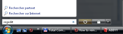 Lancer l'utilitaire Editeur du Registre (regedit.exe): tapez regedit dans le champ de recherche du menu Démarrer et appuyez sur la touche Entrée.