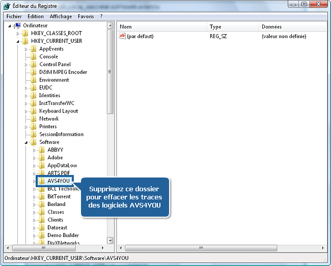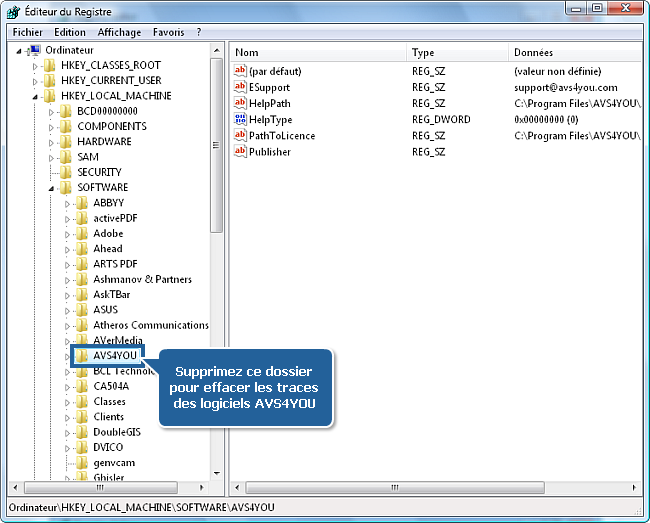 HKEY_LOCAL_MACHINE > SOFTWARE > Wow6432Node > AVS4YOU et supprimer le dossier