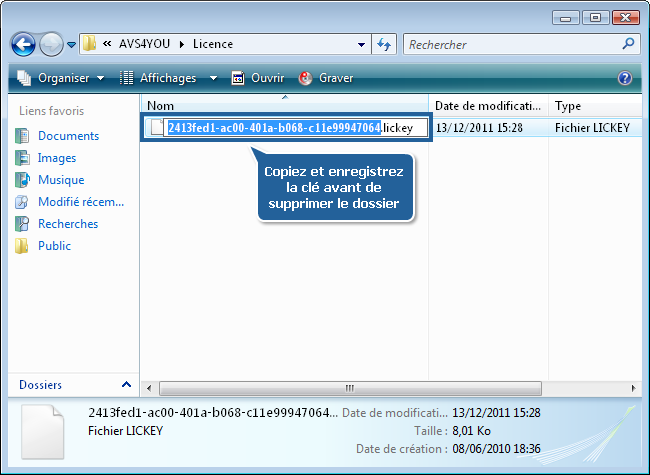 Dans Windows Vista/7, ce dossier se trouve sur C:\ProgramData\AVS4YOU\Licence.