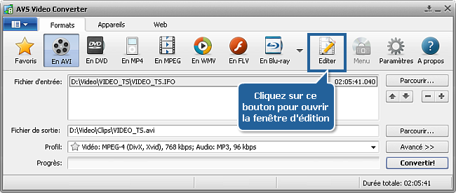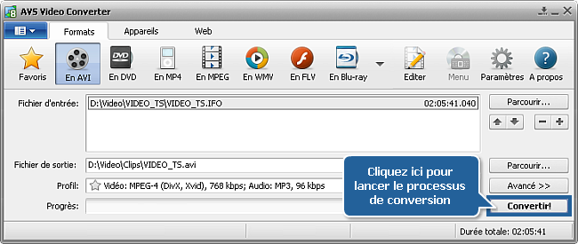 AVS Video Converter jouit d'une grande popularité. Son succès s'explique par une interface très simple et intuitive. Le logiciel permet non seulement de convertir vos vidéos à plusieurs formats vidéo, mais aussi d'effectuer un montage vidéo et de graver le fichier obtenu sur un disque.