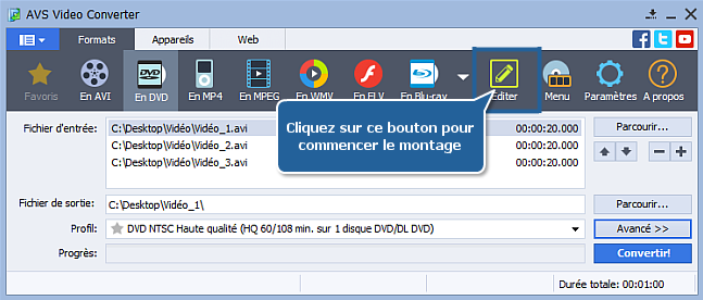 Maintenant cliquez sur le bouton Editer pour commencer le montage.