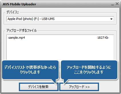 現在、AVS Video Converter は、お使いの iPod にファイルをアップロードするために AVS Video Converter インストール・パッケージに付属している AVS Mobile Uploader を使用します。
