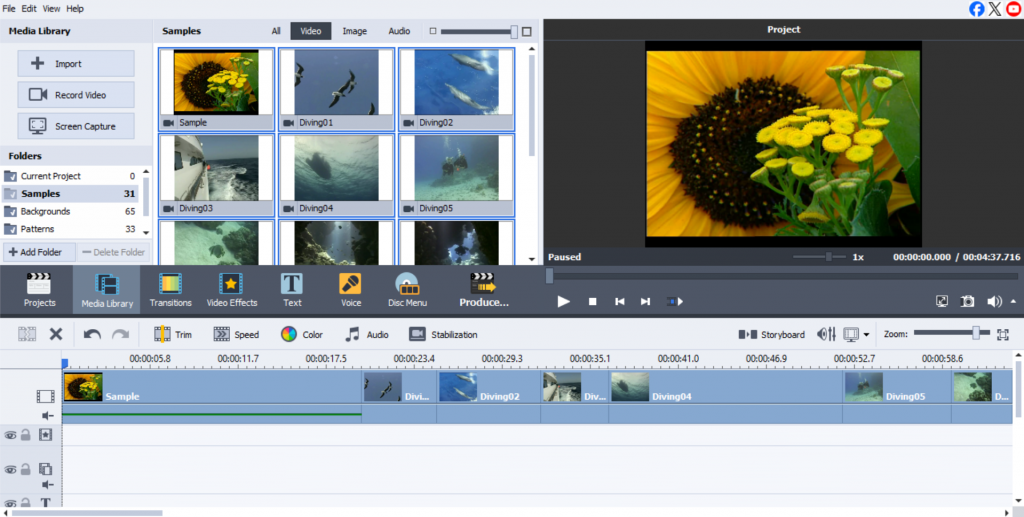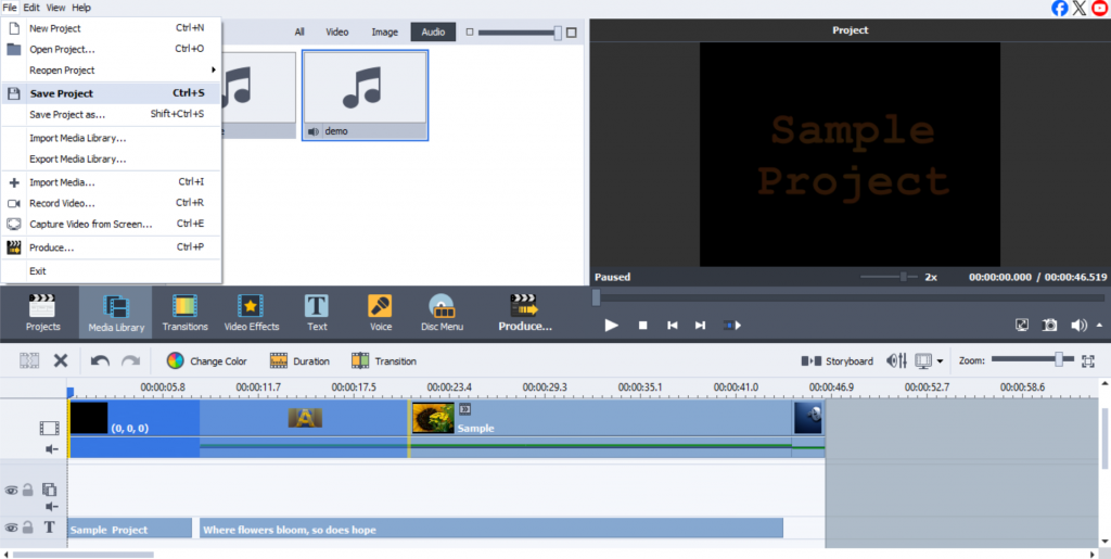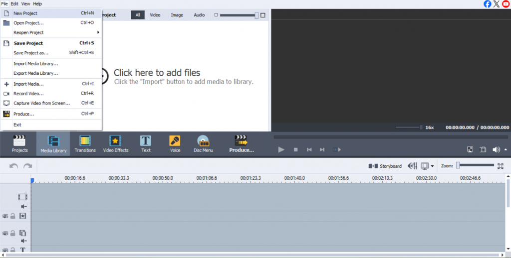 - Launch the AVS Video Editor and select “New Project” or “Open Project” from the interface.