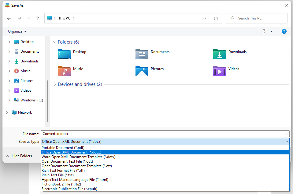 AVS Document Converter is a free tool for saving document in different output formats on Windows. They include PDF, DOCX, DOC, ODT, RTF, TXT, HTML, and others.