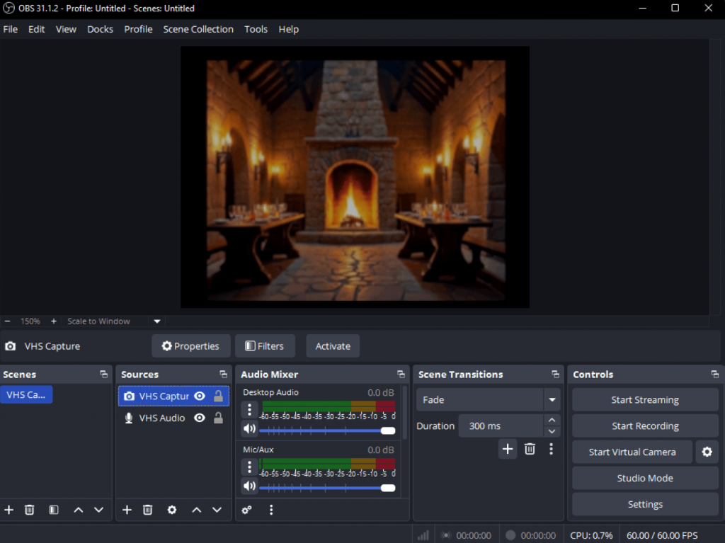OBS Studio is a free, open-source tool mainly used for live streaming and screen recording, but it also supports VHS capture. It’s highly customizable, allowing to adjust settings for bitrate, resolution and select output format before or during recording.
