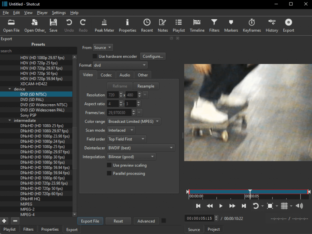 Shotcut is a full-featured, open-source video editor that supports a wide array of formats. It includes video capture functionality and a comprehensive set of polishing tools.