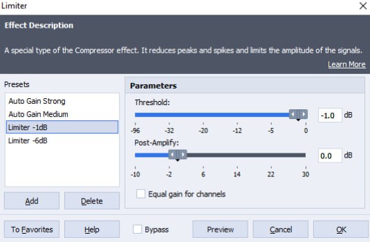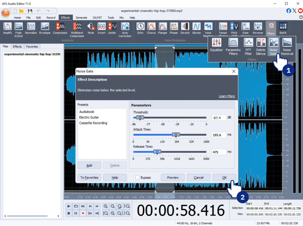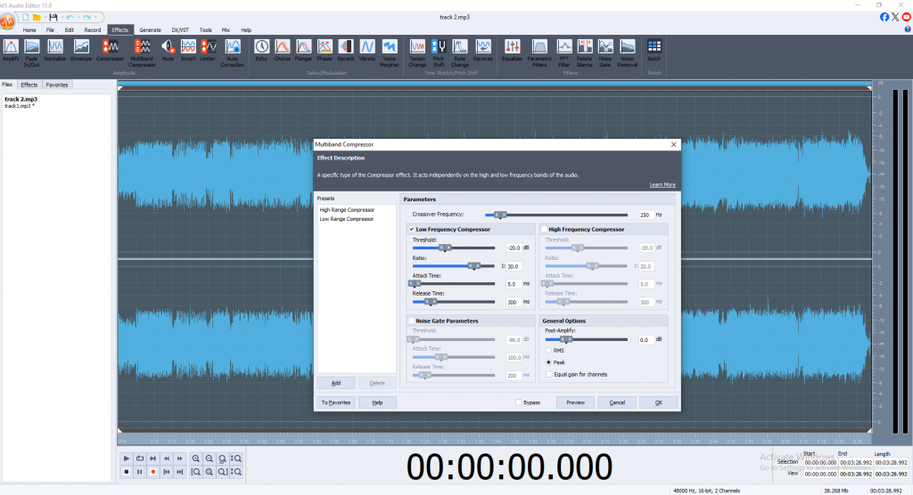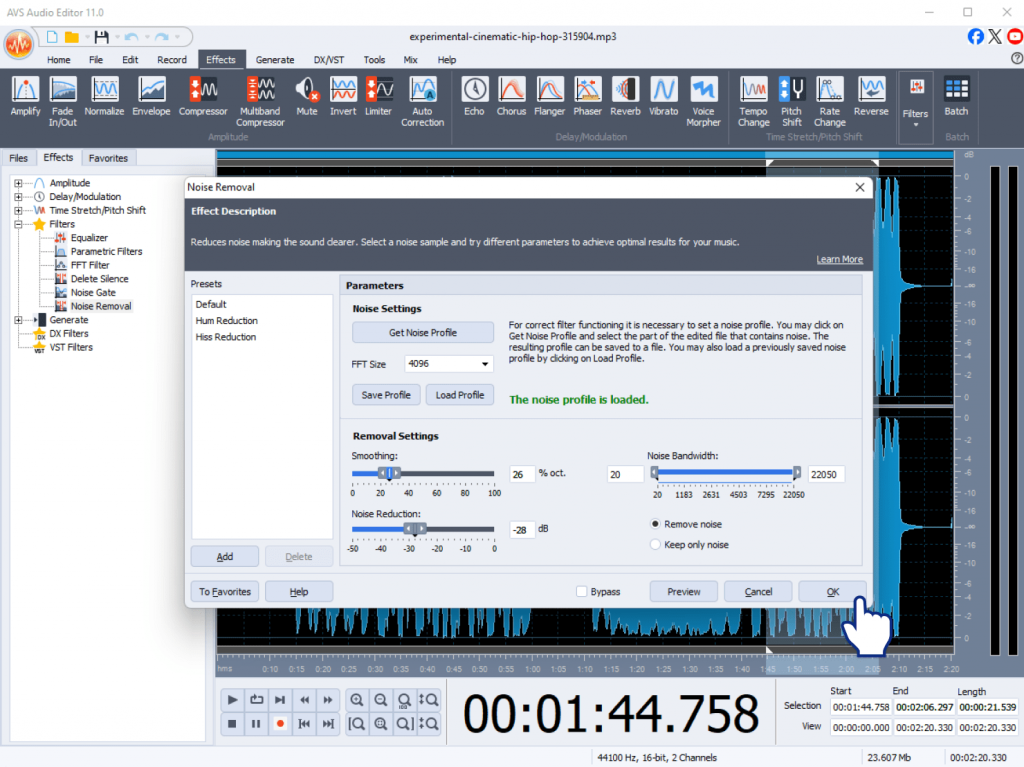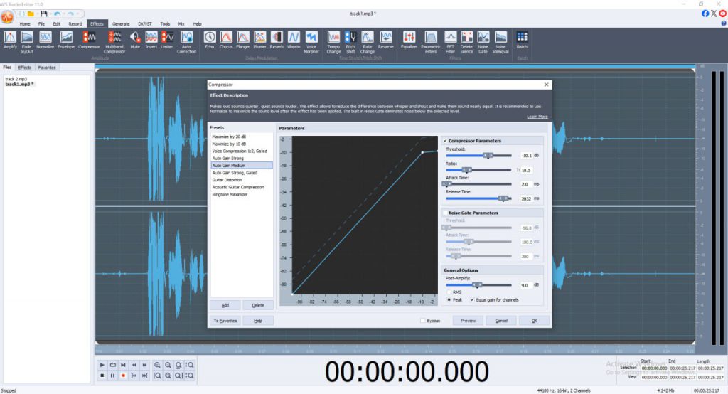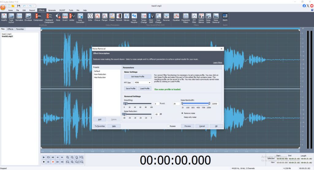 All these options can be applied directly within AVS Audio Editor using the Effects and Mix panels.