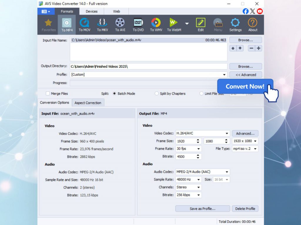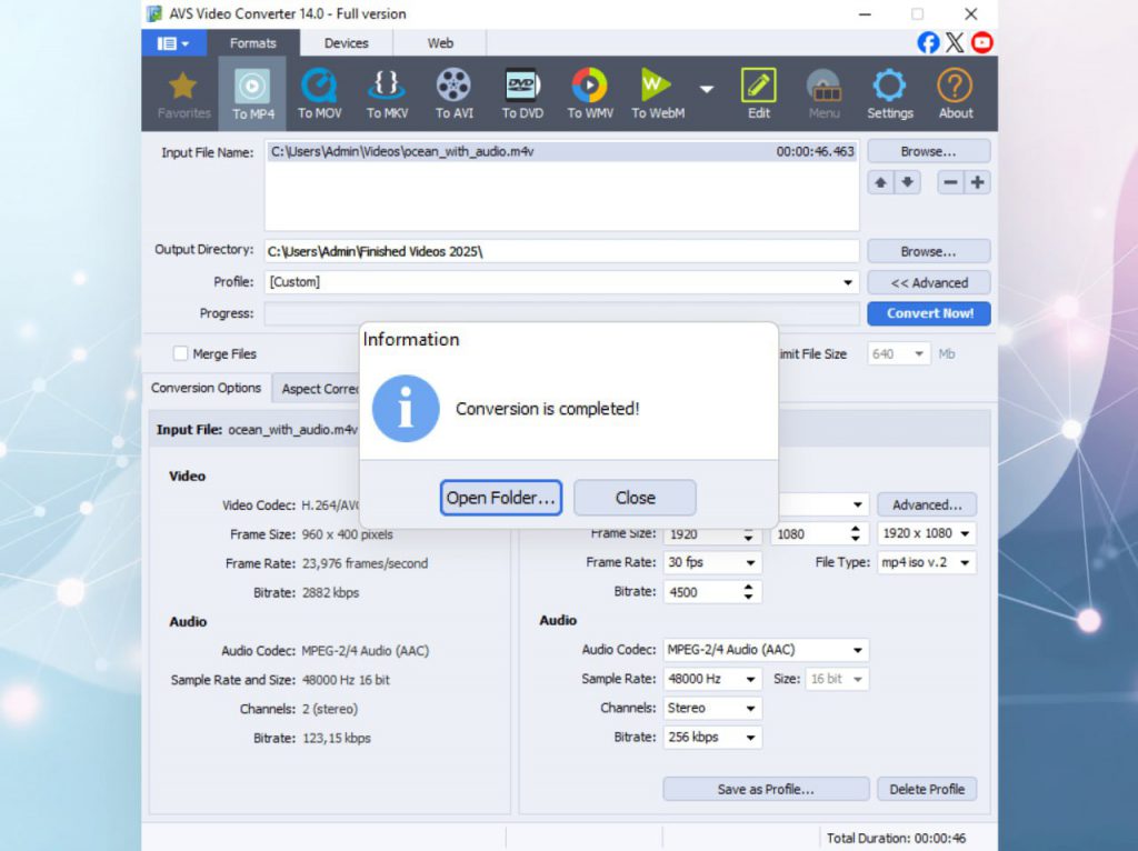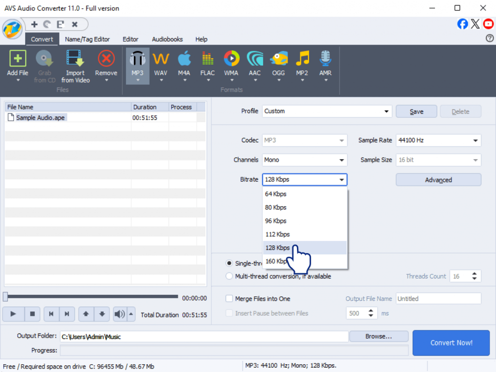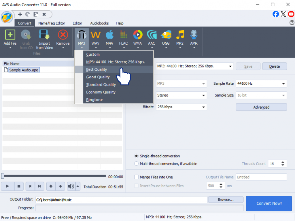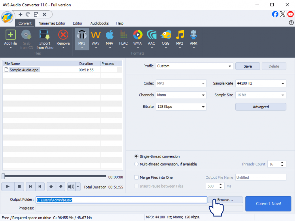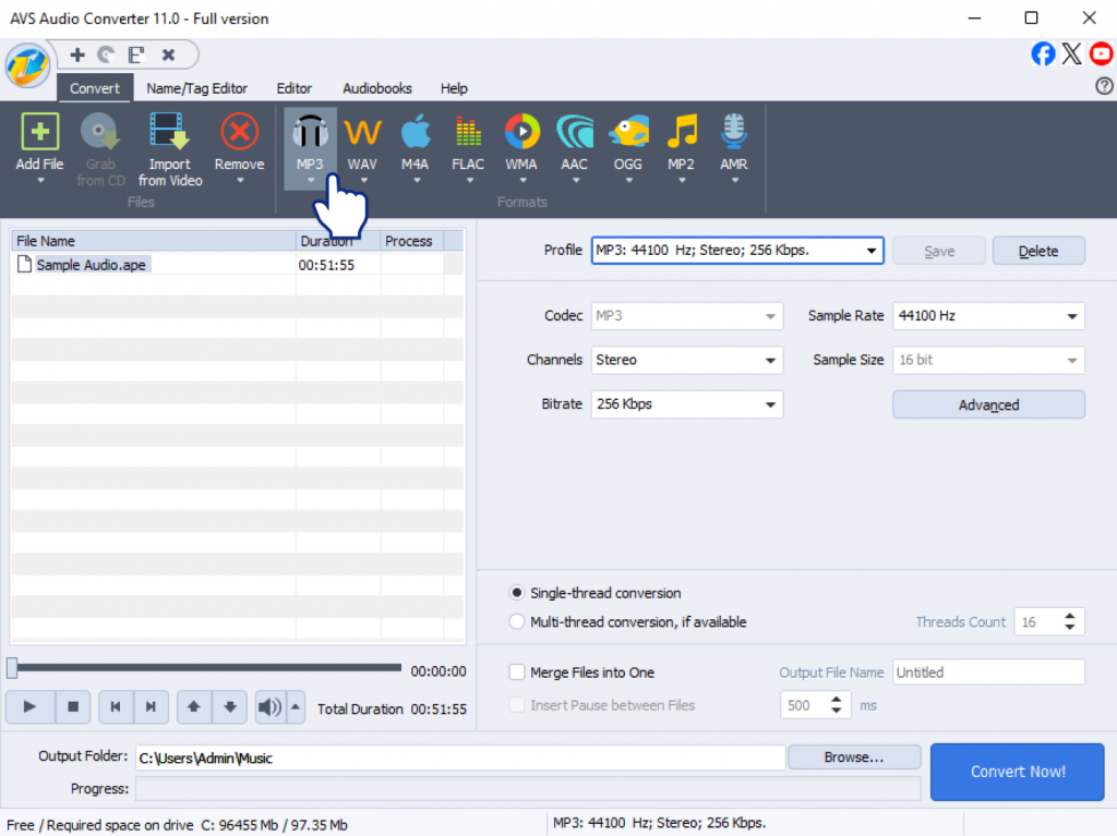 If you want to convert your output file into different formats, use AVS Audio Converter.