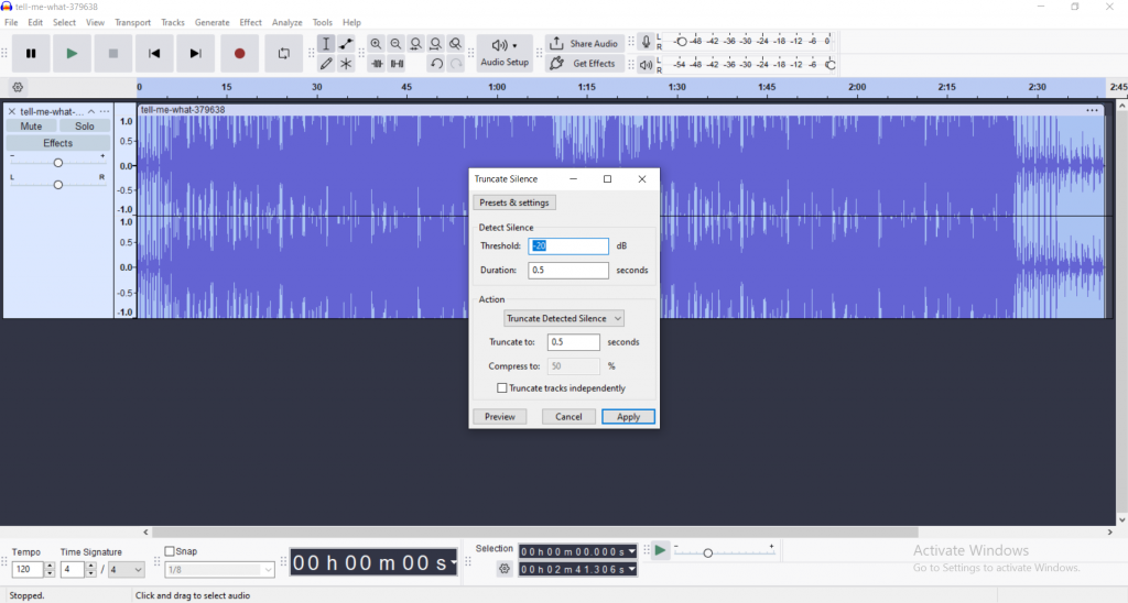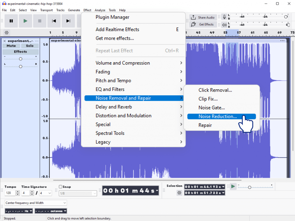 Use fade-in and fade-out effects to link songs naturally and keep the energy steady. They’re available in Effects → Fade In/Fade Out.