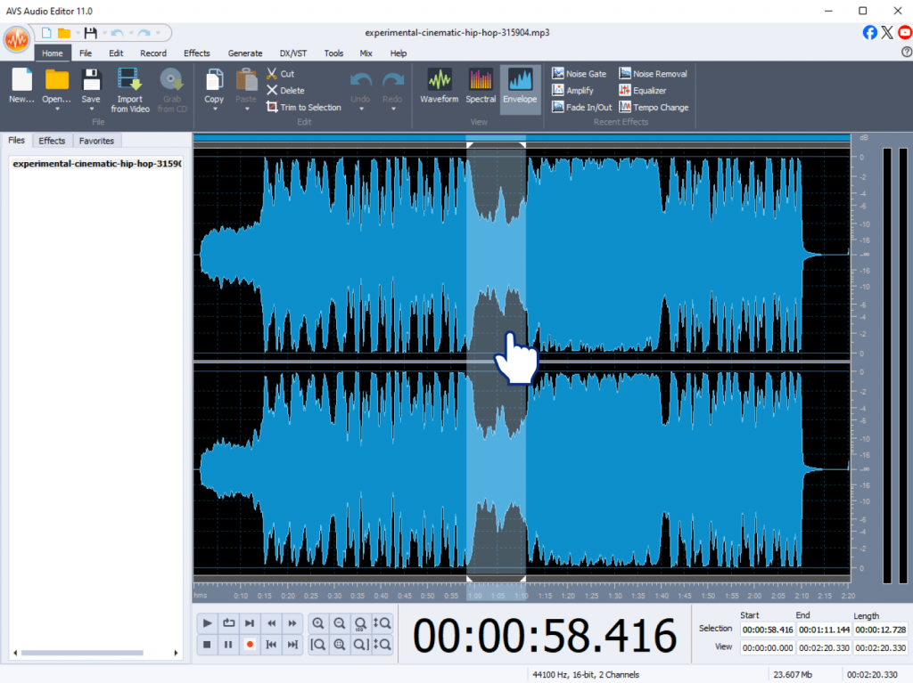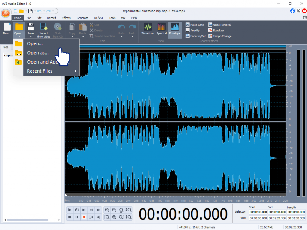 The visual waveform display in AVS Audio Editor helps you see every beat and cut precisely where needed. You can remove silences, split tracks, or synchronize beats visually.