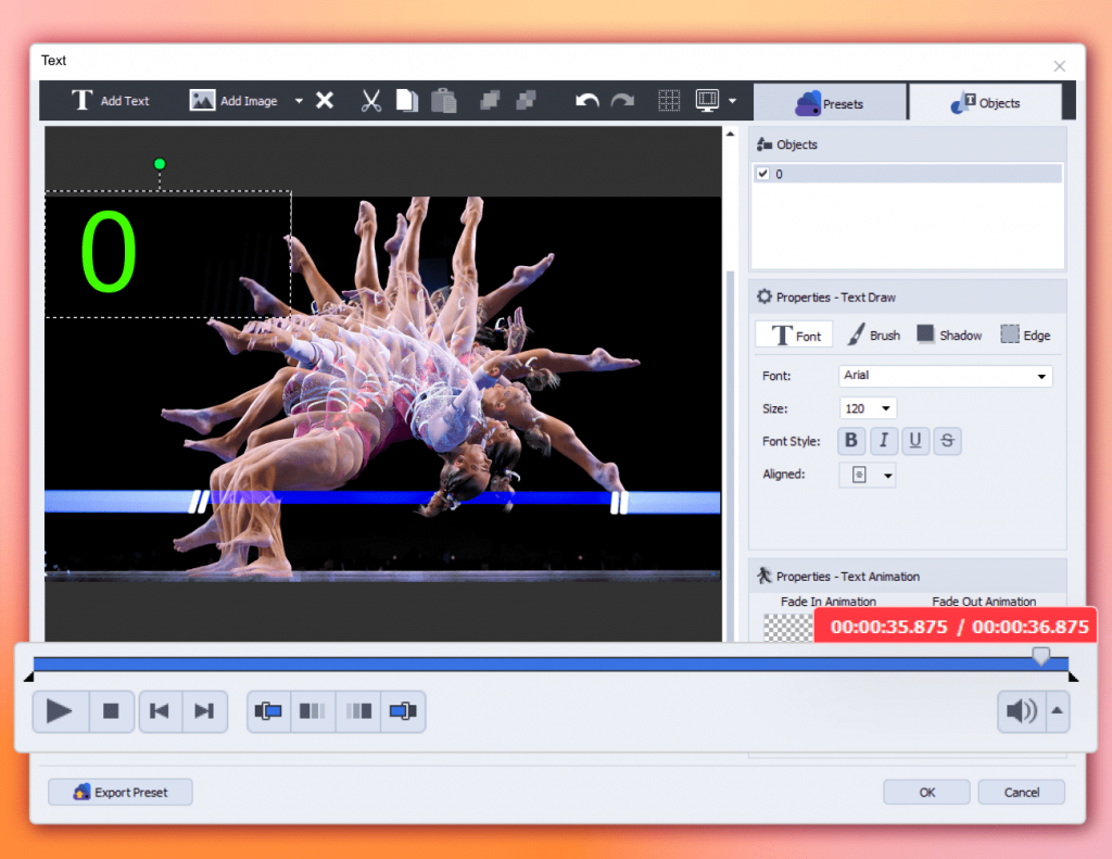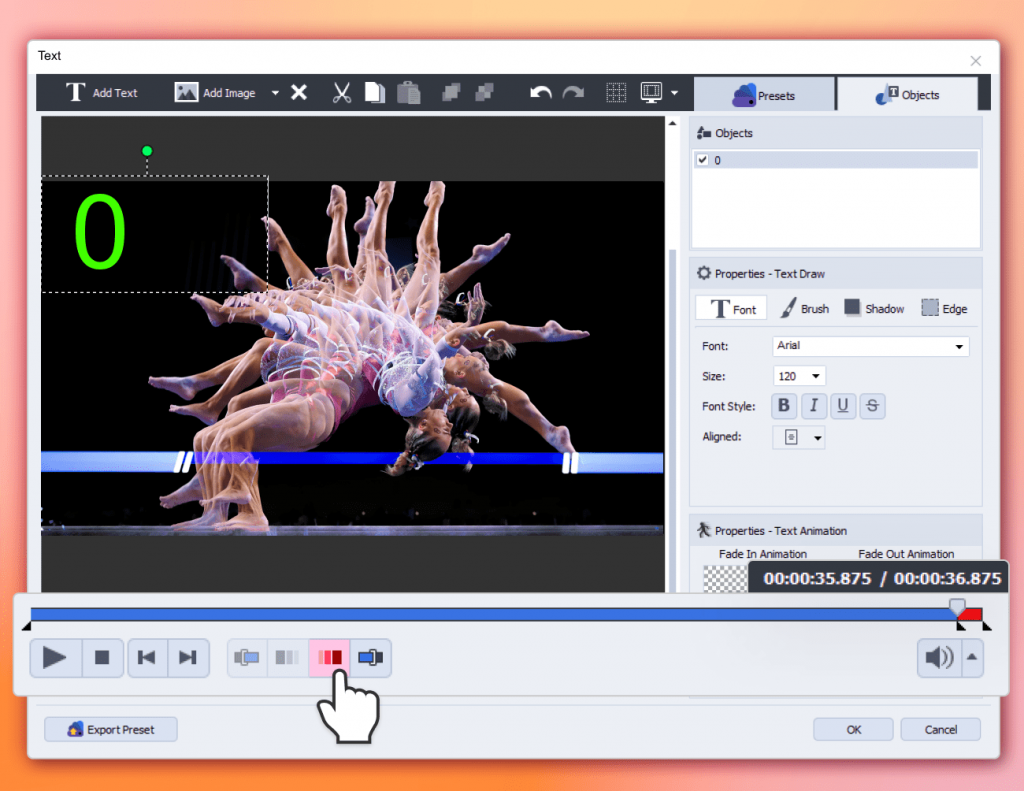Apri il tuo progetto in AVS Video Editor e aggiungi il primo oggetto di testo sulla timeline. Imposta lo stile necessario e altri parametri cliccando su Edita testo e inserisci “:”. Assicurati che ci sia abbastanza spazio per inserire i valori necessari.