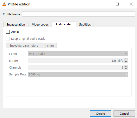 - Selezionate Codec audio e deselezionate la casella accanto a Audio.