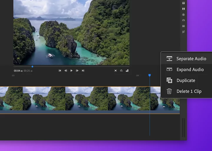 - Selezionate e fate clic con il pulsante destro del mouse sui livelli per un video e un suono, quindi scegliete Separa audio.