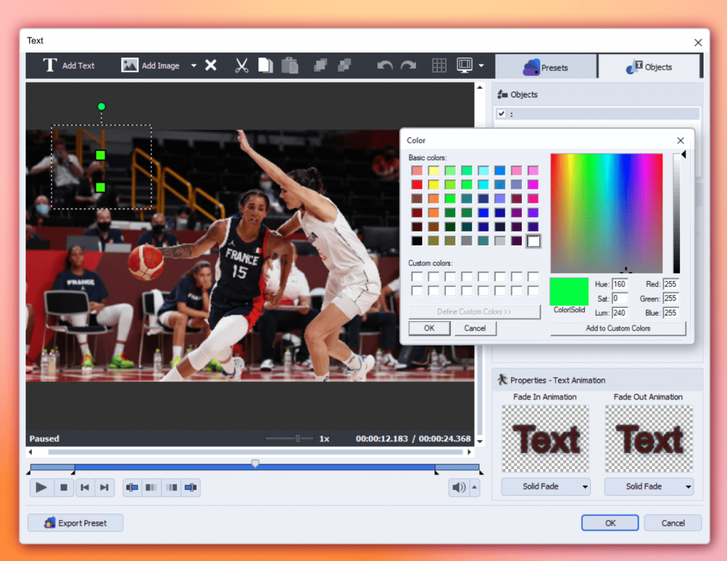 Abra su proyecto en AVS Video Editor y agregue el primer objeto de texto en la línea de tiempo. Establezca el estilo necesario y otros parámetros haciendo clic en Editar texto e inserte “:”. Asegúrese de que haya suficiente espacio para ingresar valores.