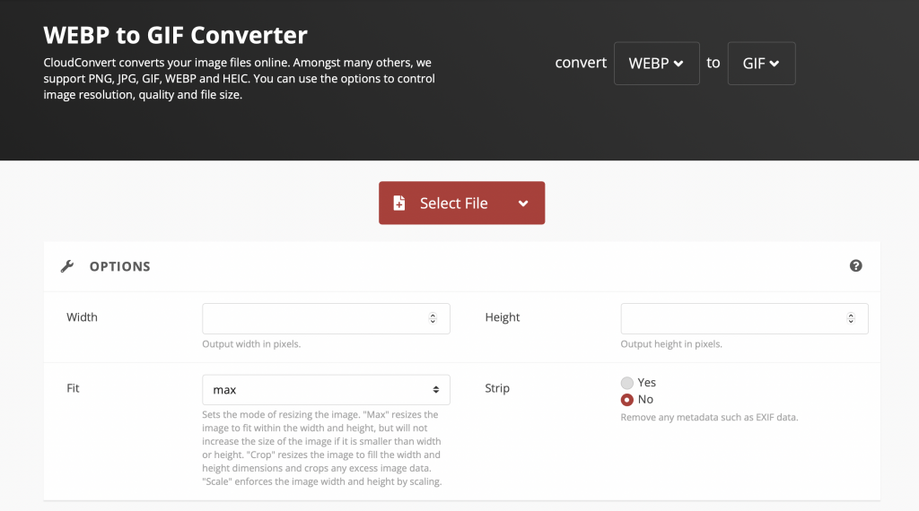 Another convenient way to get an animation of the popular format or simply change the image extension is one of the free online services. The process is pretty much similar on each website — upload a WebP file, wait until the conversion is complete, and download the output GIF file.