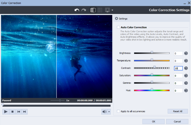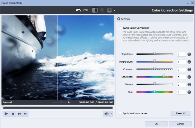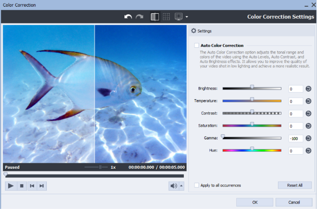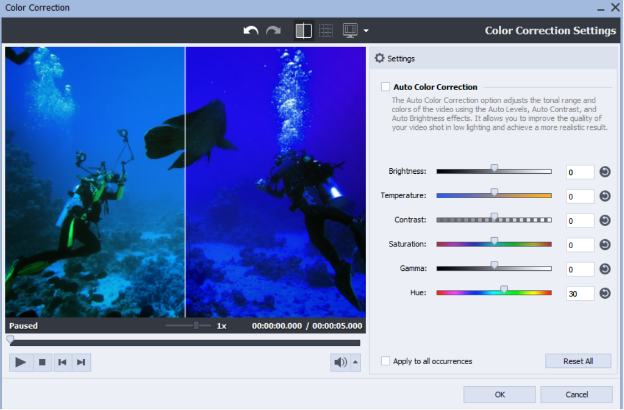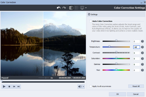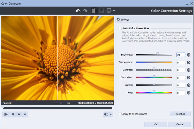 In AVS Video Editor stehen Ihnen mehrere Möglichkeiten der Farbkorrektur zur Verfügung: