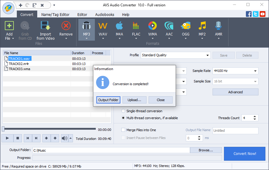 As you can see, converting audio files is really simple with free AVS Audio Converter. You can freely convert your audio tracks to different formats. Try AVS Audio Converter right now!