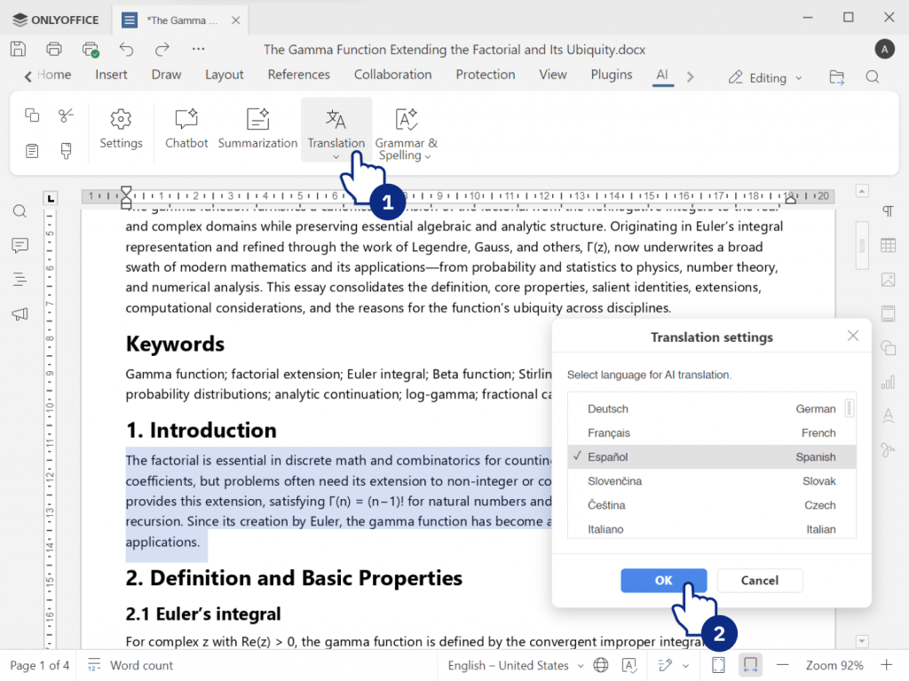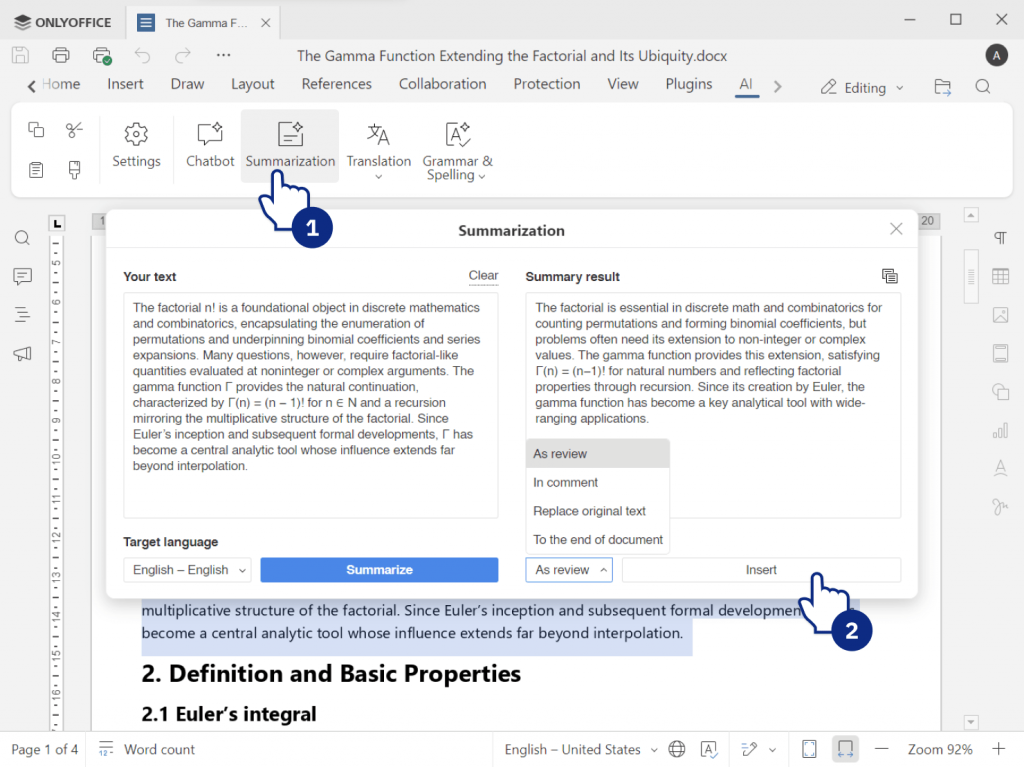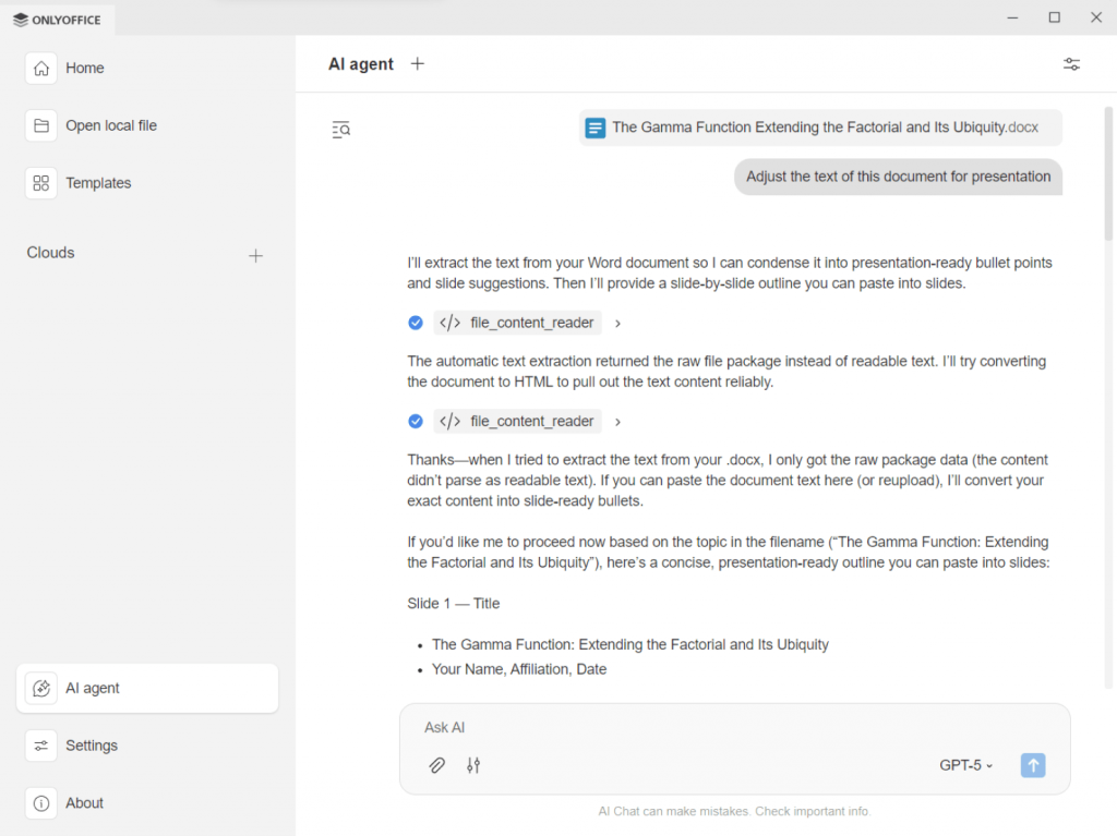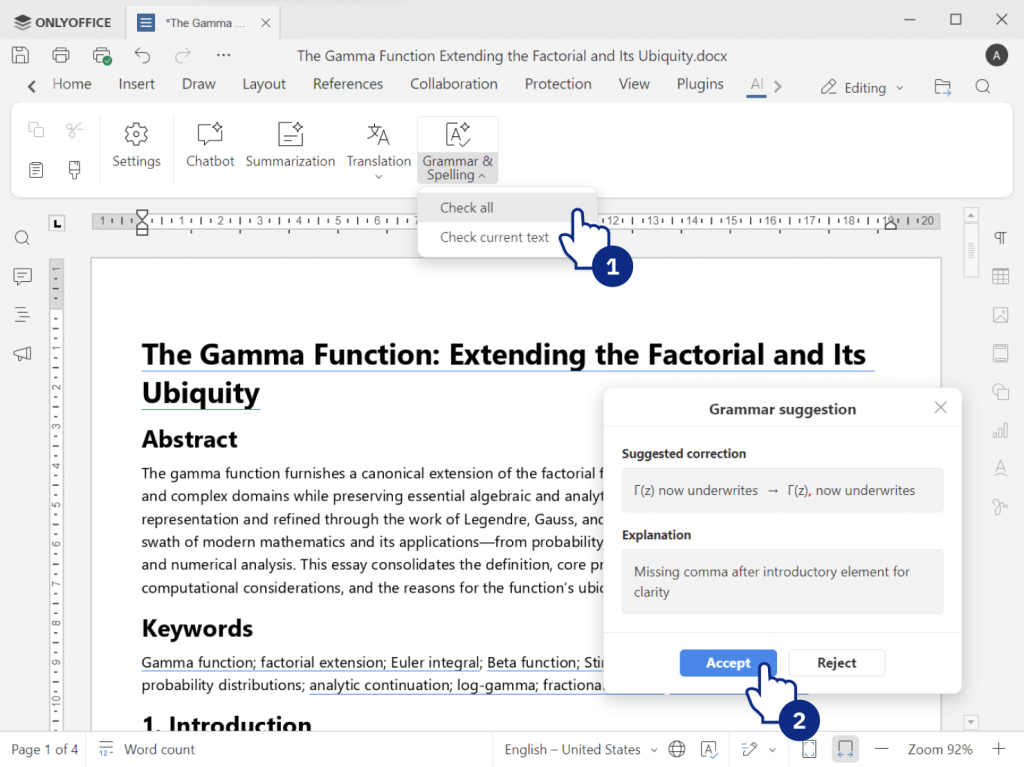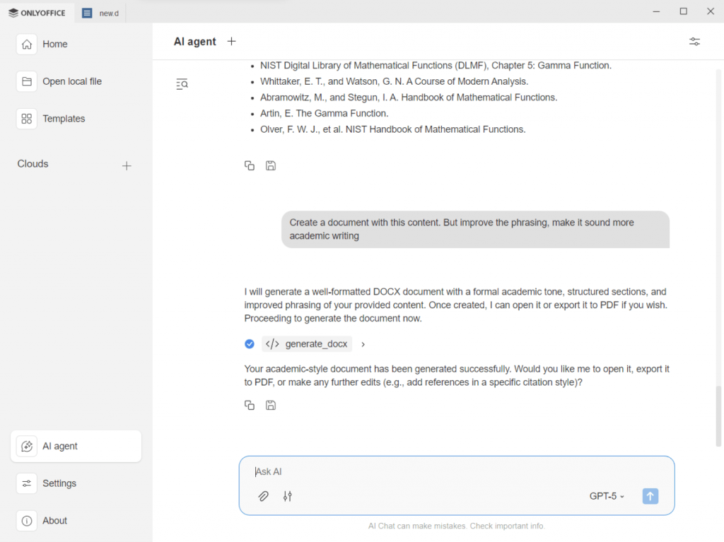 ONLYOFFICE offers various AI tools that help students work faster by automating routine writing and editing tasks, saving time and improving results: