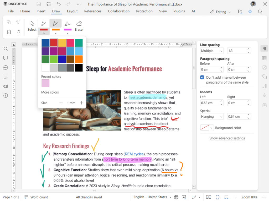 ONLYOFFICE offers a wide range of tools designed for everyday academic tasks: