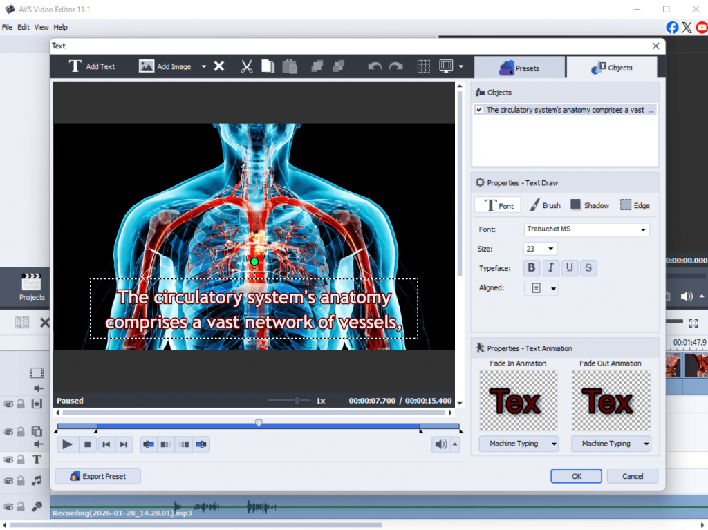 - Text overlays and subtitles for presentation videos