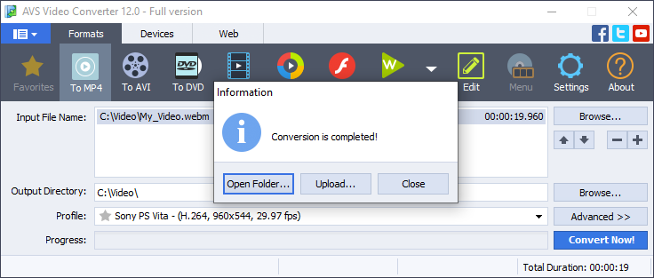 As you can see, video converting is really simple with free AVS Video Converter. You can freely convert any video files to different formats. Read this guide to learn how to convert video to WebM. With AVS Video Converter, you can also convert video files to MP4 for your favourite devices. Try it out now!