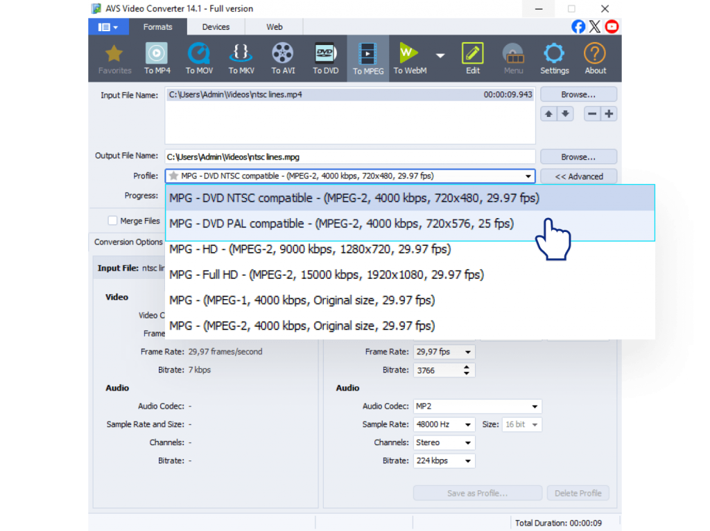 If you’re working across different platforms, you have to switch between PAL and NTSC. With AVS Video Converter, the process is simple: