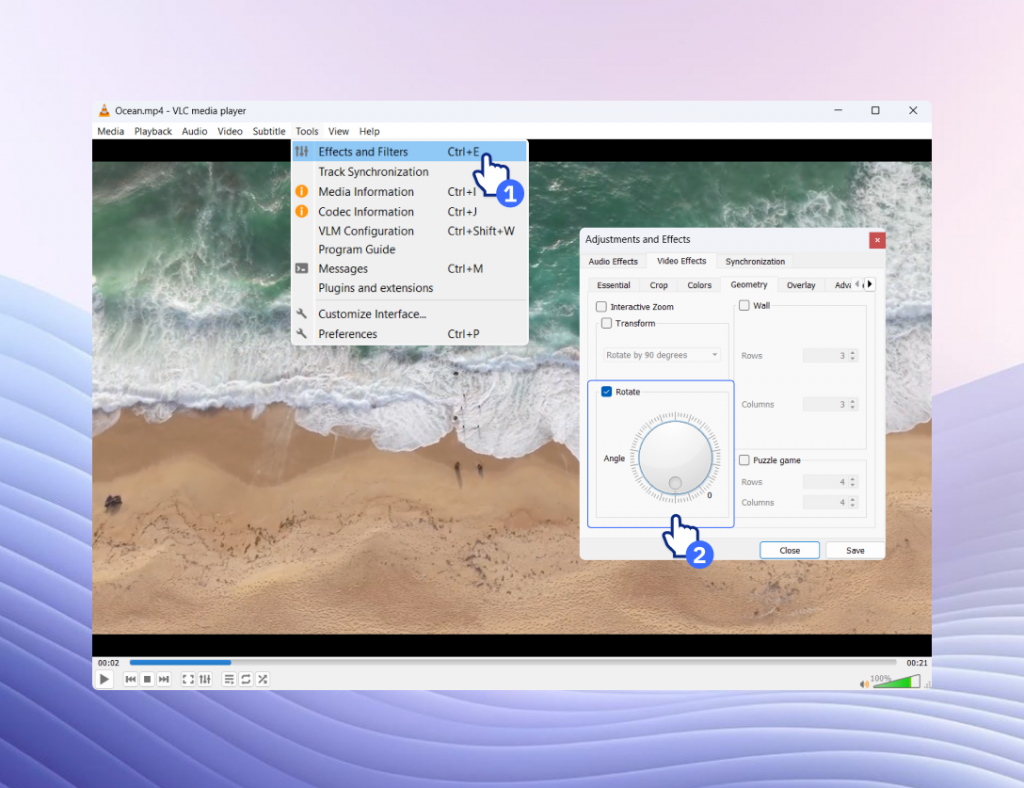 VLC is primarily a free media player, but it can perform a temporary rotation for quick fixes. Please, bear in mind that this method doesn’t permanently save the rotated video.