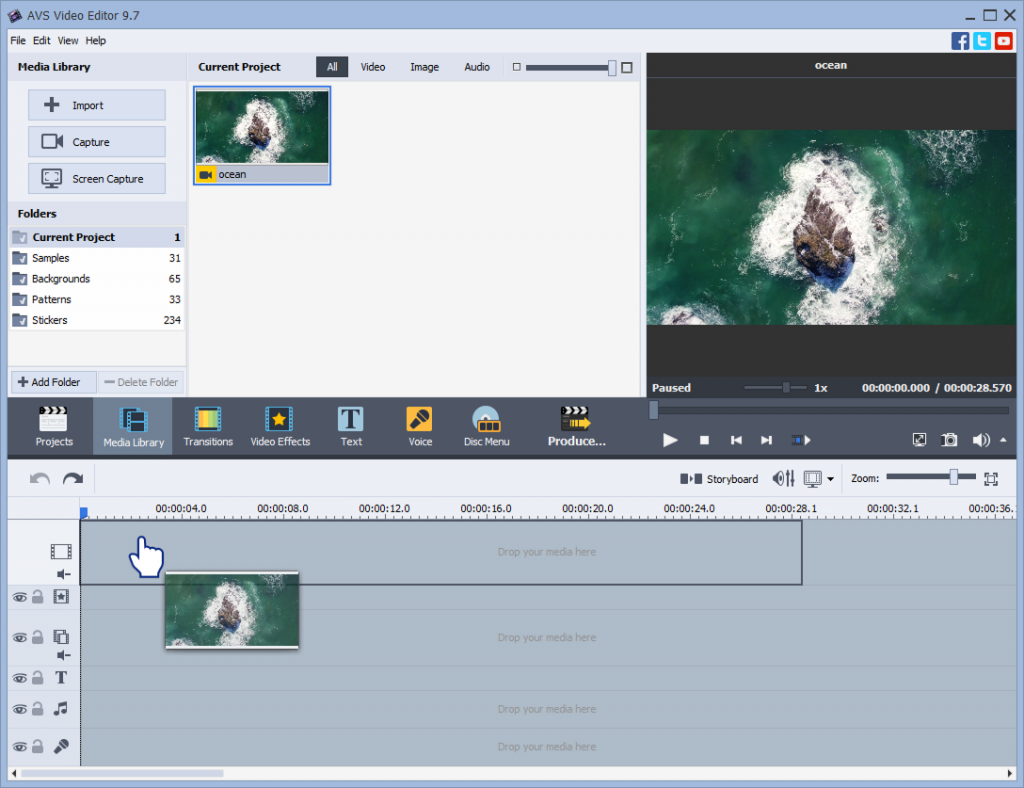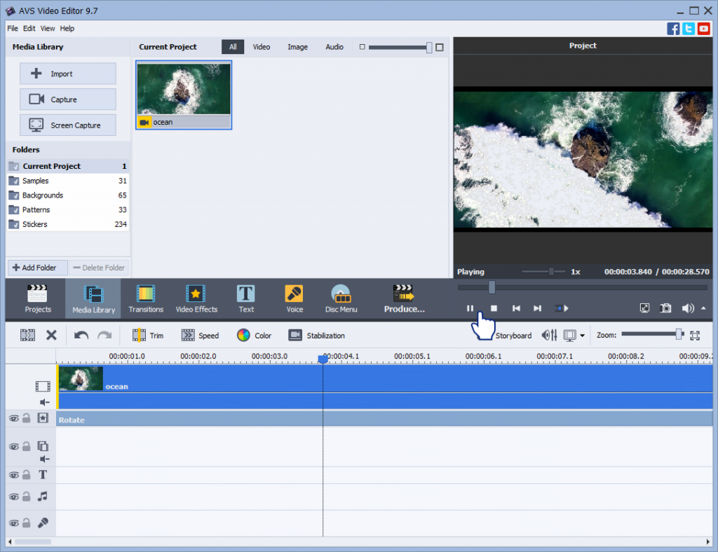AVS Video Editor’s functionality is not limited to video rotation, it also allows to trim, crop, add text overlays and a wide range of effects. It’s the best choice if you want more than just a basic video rotator for PC.