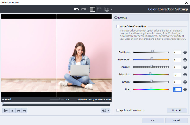 Aktivieren Sie die automatische Farbkorrektur, damit AVS Video Editor passende Parameter auswählen könnte.
