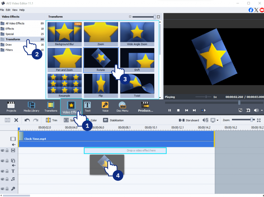 - AVS Video Editor (Windows) is the ideal choice. It’s designed for beginners, making rotating or flipping clips a quick and straightforward process with virtually no learning curve.