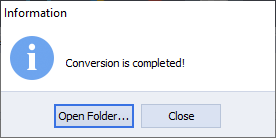 Um den Ordner mit der umgewandelten Videodatei zu öffnen, sie abzuspielen und ihre Qualität zu überprüfen, klicken Sie auf den Button Ordner öffnen. Um das Informationsfenster zu schließen, klicken Sie auf den Button Schließen.
