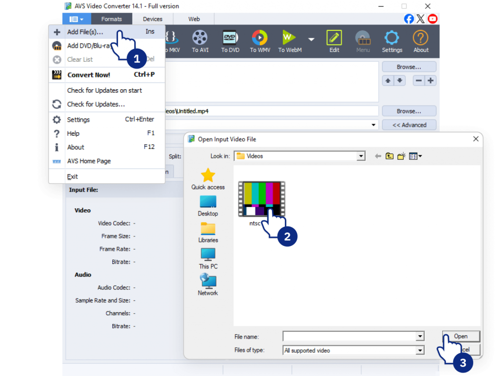Launch the program and click the “Add Video” button (or drag and drop your file) to import your NTSC video into the application.