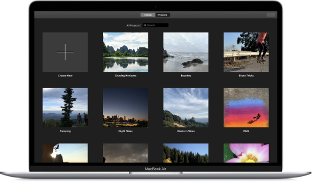 iMovie hat eine intuitive Benutzeroberfläche zum Bearbeiten von Videos, Ersetzen von Hintergründen, Anwenden von Bild-in-Bild- und Split-Screen-Effekten. Der Editor bietet eine Audio-Bibliothek mit etwa 80 Soundtracks und integrierten Audioeffekten.
