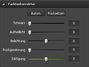 Die folgenden Einstellungen der Farbtonkorrektur werden erscheinen: