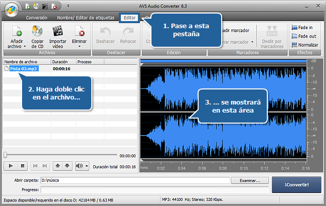 Con AVS Audio Converter Ud. puede editar un archivo de audio antes de pasarlo a su dispositivo: borrar las partes indeseadas o aplicar efectos.