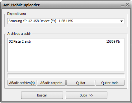 Pulse el botón Cargar... en la ventana abierta. La aplicación AVS Mobile Uploader se lanzará.
