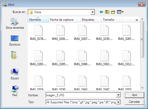 En la ventana abierta de Windows Explorer seleccione los archivos de imagen o la carpeta necesarios y pulse el botón Abrir para cargarlos en el programa: