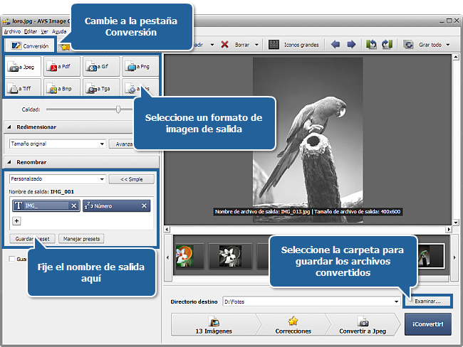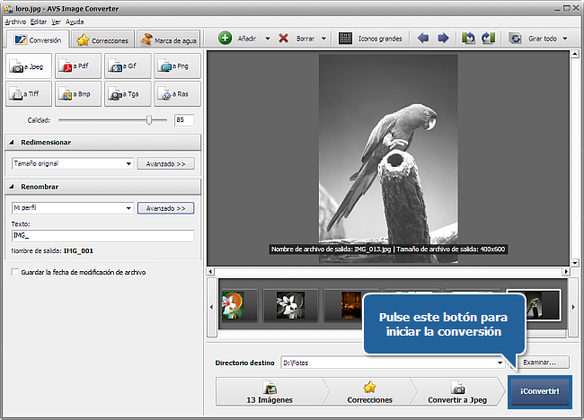 Supongamos usted tiene una pila de imágenes de alta calidad en formato RAW capturadas con su cámara de fotos digital y necesita procesarlas. En este caso AVS Image Converter es precisamente lo que usted necesita. Utilizando este programa puede editar sus imágenes por medio de alicarlas algunos efectos o redimensionar para poder en adelante demostrar o imprimirlas.