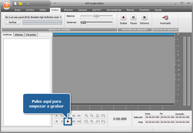 Para empezar a grabar su voz pulse el botón Grabar en la parte inferior de la pantalla del programa.