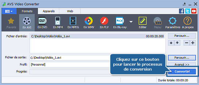 Cliquez ici pour télécharger le logiciel. Une fois téléchargé, lancez le fichier AVSVideoConverter.exe et suivez les instructions de l'assistant d'installation.