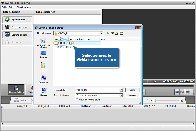 Remarque: si vous voulez convertir un DVD, suivez: X:\Video_TS\Video_TS.IFO. où "X" correspond à votre DVD-ROM ou au dossier sur votre disque dur où se trouve le DVD. Veuillez consulter notre