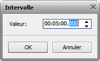 - Selon l'intervalle de temps – utilisez cette option si vous voulez assigner un intervalle de temps entre les chapitres ajoutés. Si vous sélectionnez cette option, la fenêtre Intervalle s'ouvre vous permettant de sélectionner la valeur de temps nécessaire.