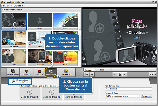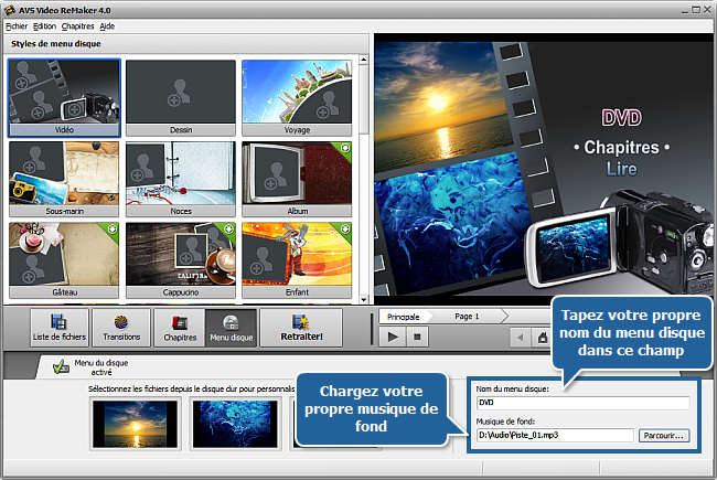 Comment créer un menu de disque en utilisant AVS Video ReMaker?