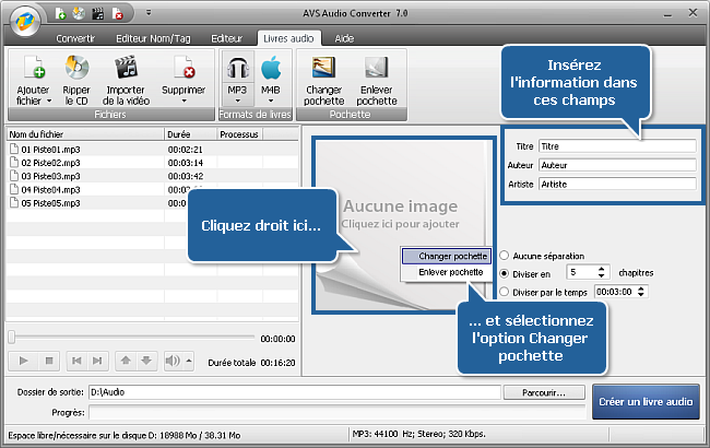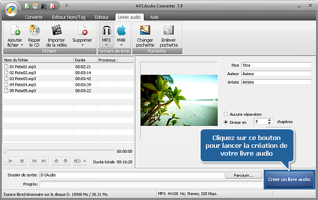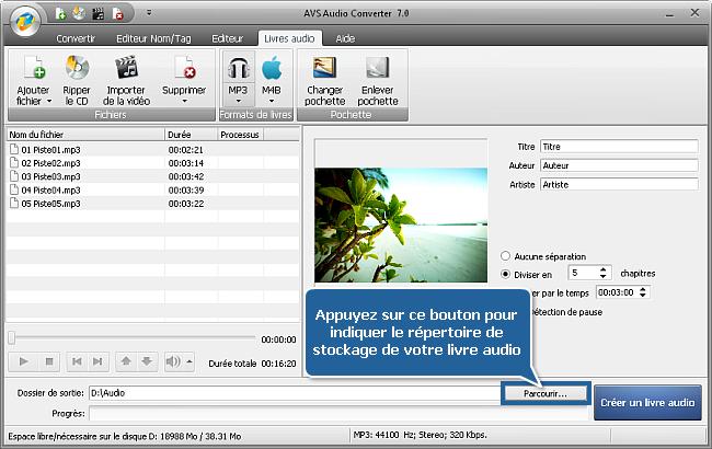 AVS Audio Converter vous permet de créer des livres audio au format m4b.