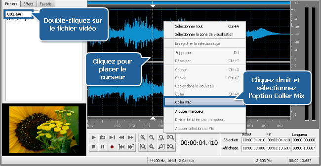 Utilisez l'opération Coller pour remplacer l'audio d'origine (ou une partie) de votre fichier vidéo par une autre piste son.