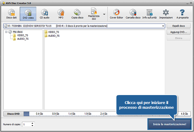 Adesso clicca su Inizia la masterizzazione! nell'angolo sinistro inferiore della schermata.