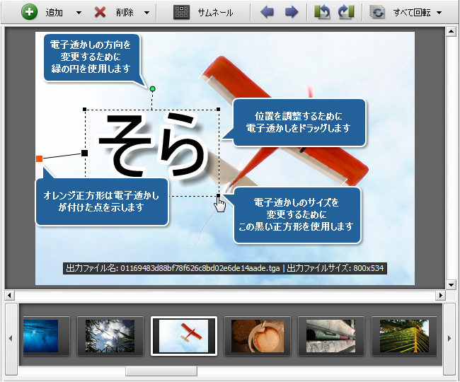 注: 画像電子透かしのサイズを変更したい場合、