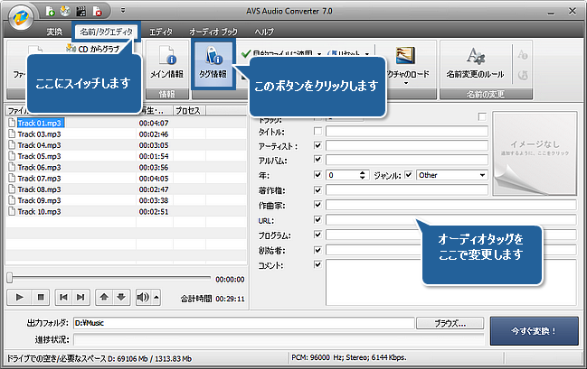 オーディオタグを編集することについての詳細情報のために、オンラインヘルプのオーディオタグの変更チャプターを参考してください。